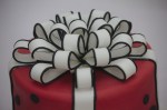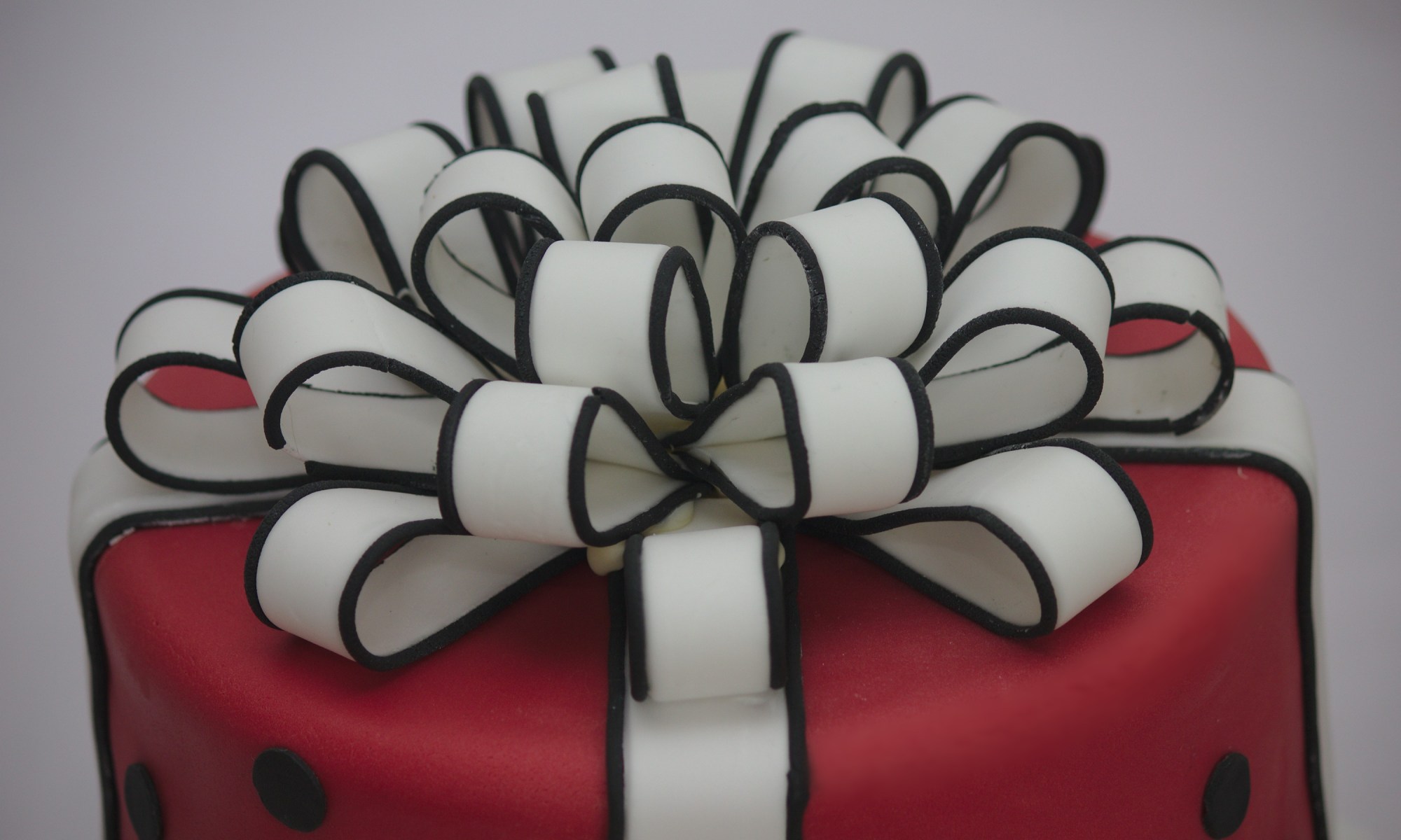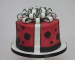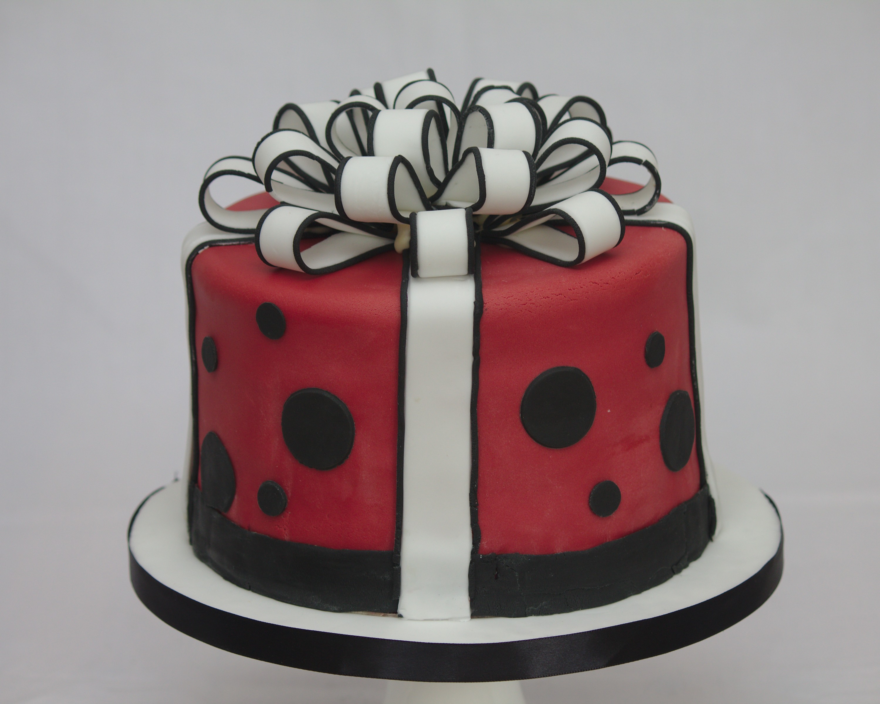 This cake was a bit of a disappointment. I made it for a friend’s father’s birthday, in his team’s colours – red, black and white. I bought the red sugarpaste pre-coloured, and it was really difficult to use. It kept tearing and did not lie well. I used sugarpaste for the bow too, which was a bit of an experiment.