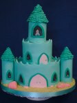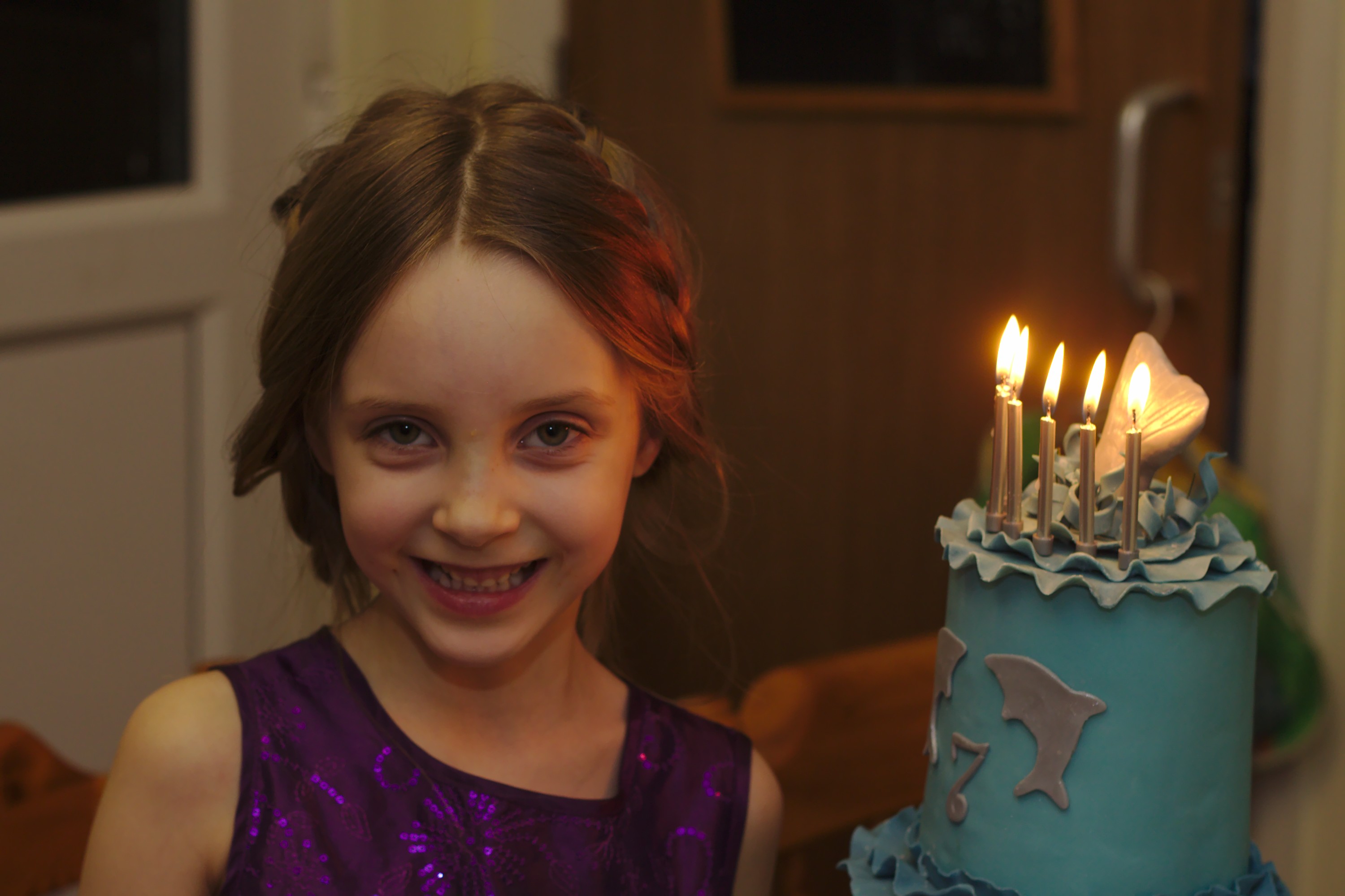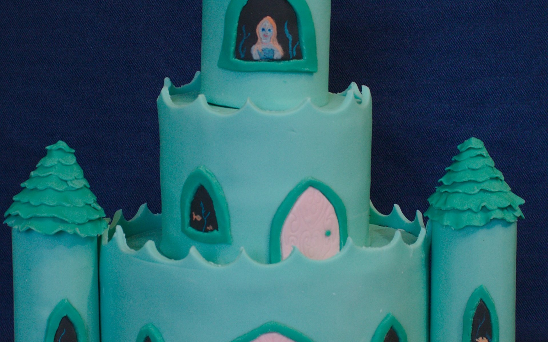 A mermaid castle cake for Rosie’s 6th birthday. Bottom tier is chocolate cake with chocolate buttercream filling, middle tier is vanilla cake with vanilla buttercream and raspberry filling, top tier and towers are dummies. Hand-painted mermaid. The shells were made by my 7-year-old son using the plastic insert from a box of chocolates. This cake very nearly didn’t come off, as I was delayed by a migraine and then by my older daughter breaking her finger and having to have trips to hospital to sort it out. But it was worth it to know that Rosie had the cake she’d envisioned.