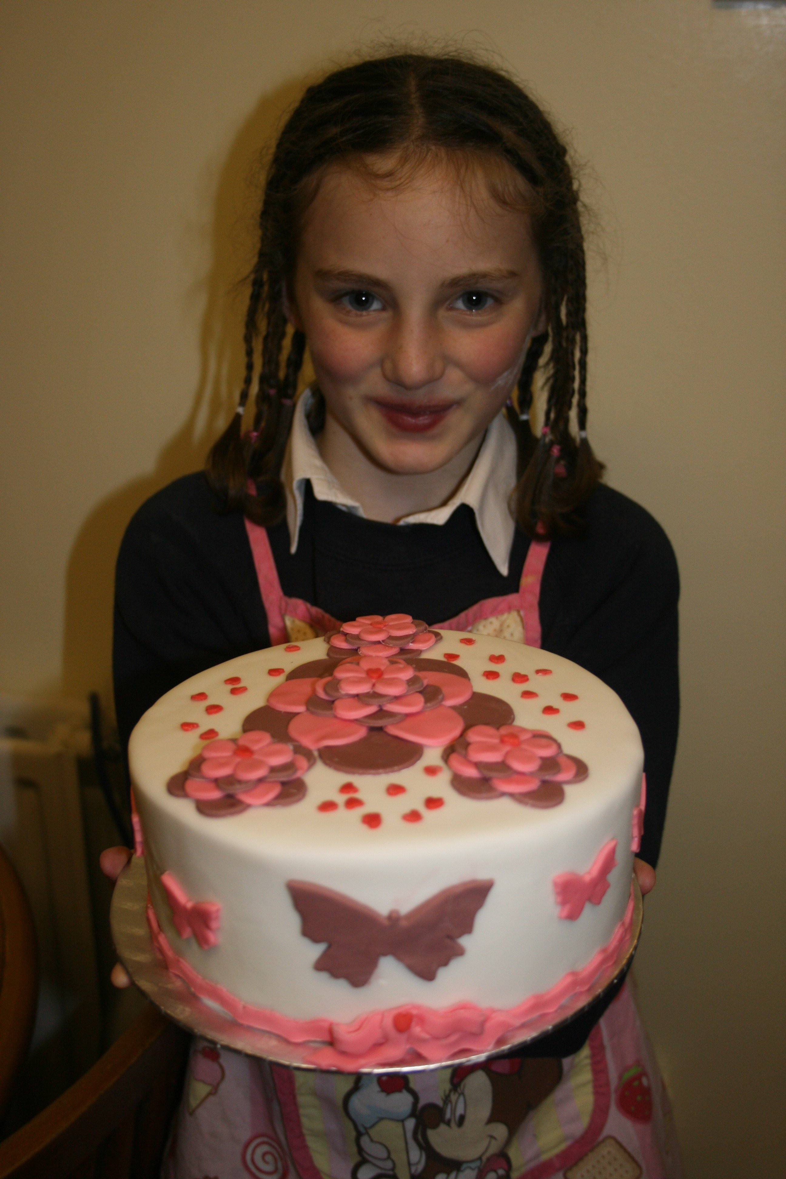 I provided the cake – lemon cake with lemon curd filling, covered in plain white fondant, and Dani designed and made the decorations (with some supervision and help). I think she did a great job!
