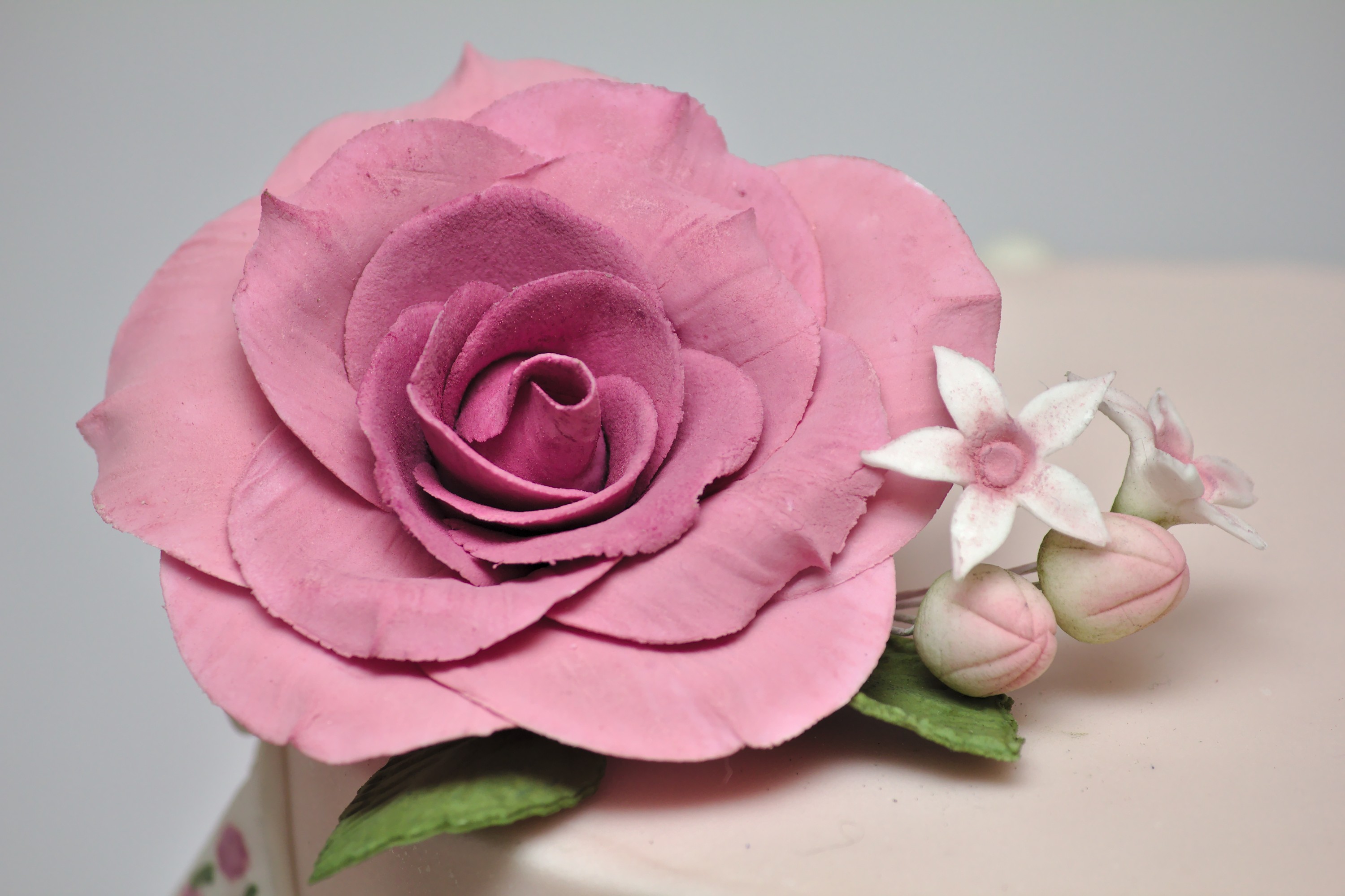 A gluten-free chocolate cake for a 10th Wedding Anniversary. Filled and covered with dark chocolate ganache, then covered and decorated with sugarpaste. I actually used a pearl edible lustre spray to lift the colours a bit after this photo was taken.