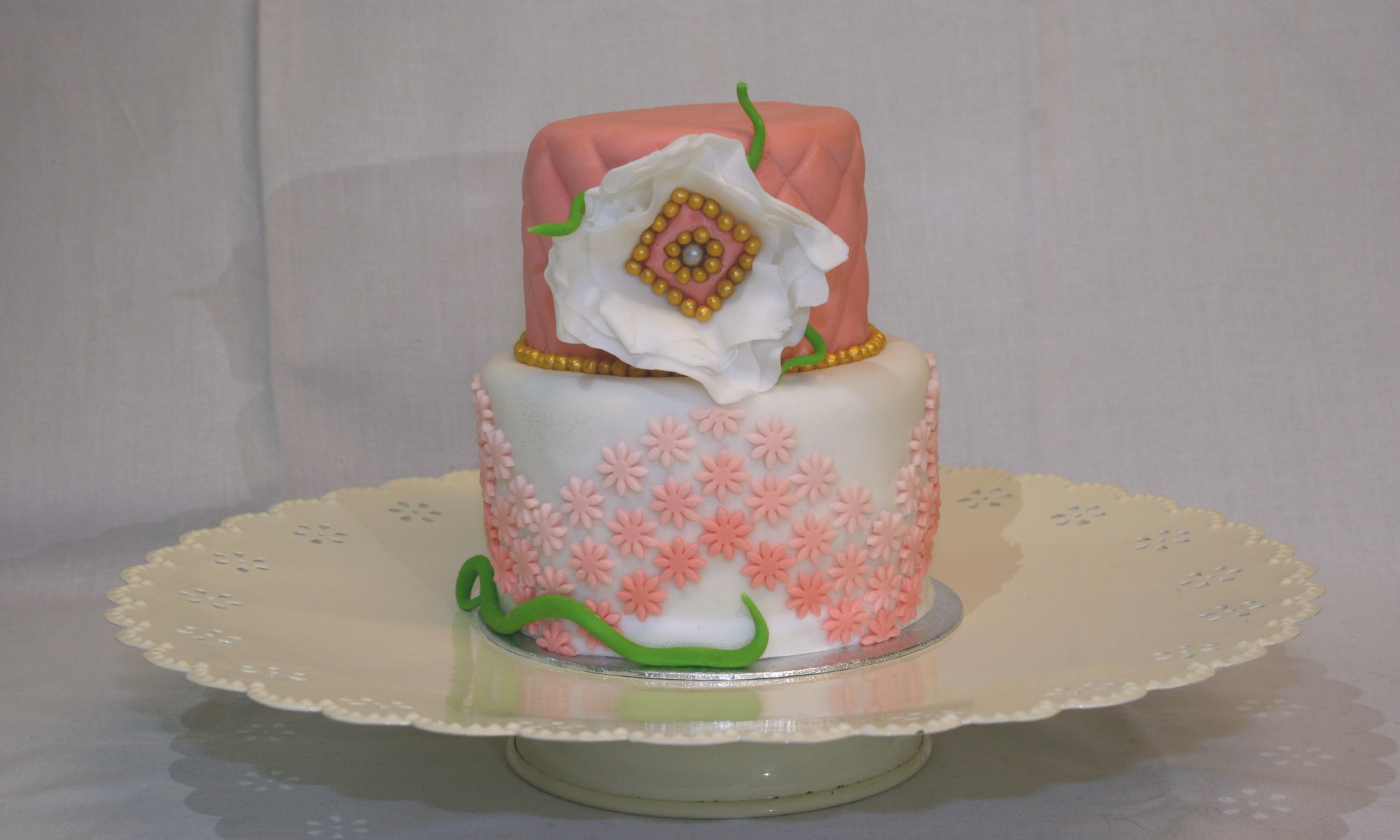 A chocolate cake for Emily. This was a challenge as she is on a dairy and wheat free diet. The cake was easy enough, but making the buttercream to go as a crumb-coat under the fondant was a challenge. In the end it was too soft and didn’t hold its shape too well. All in all, it was a good challenge, and I know what to do better next time.