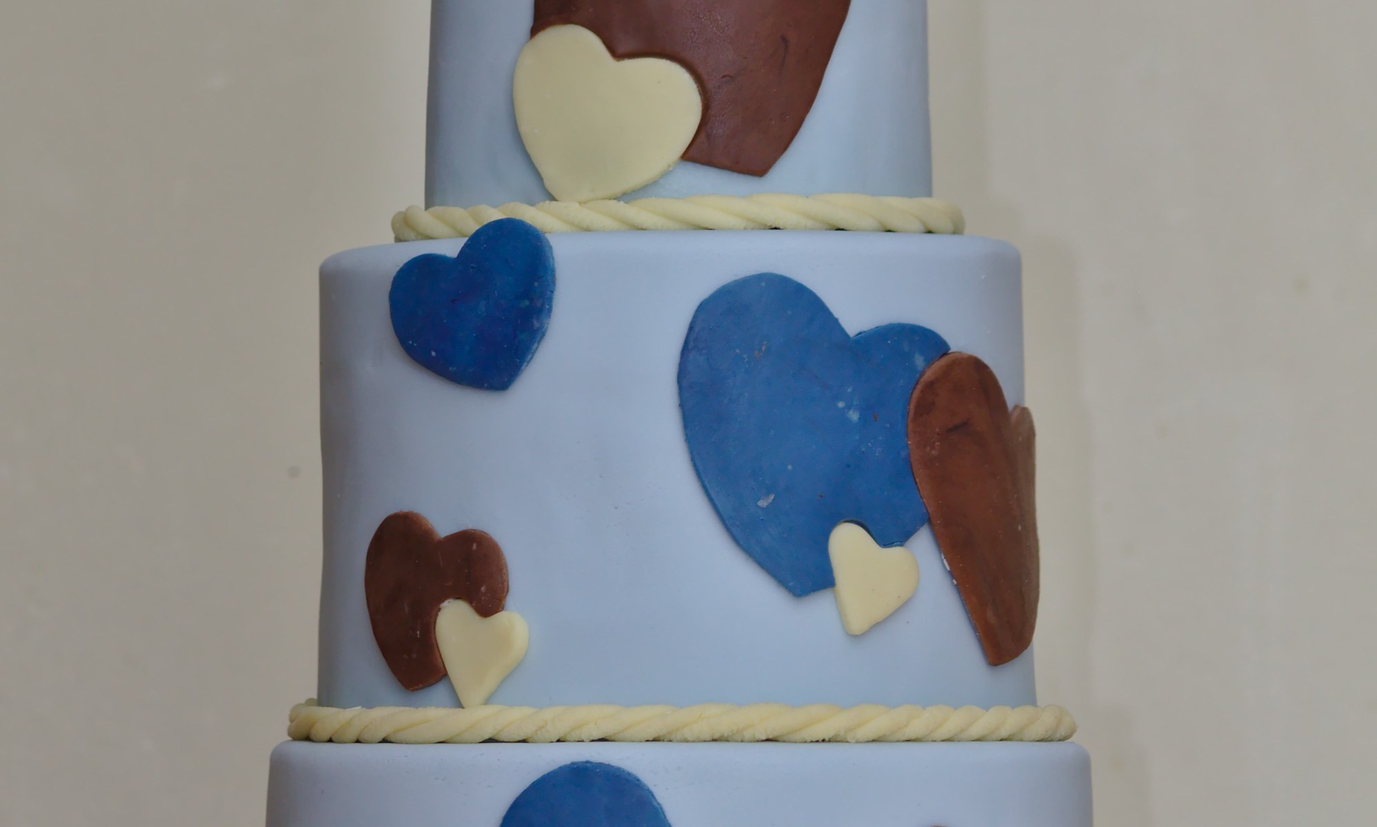 This cake was for my son’s dedication. Top two tiers were lemon cake filled with lemon buttercream; bottom tier was chocolate cake with chocolate buttercream filling. Decorated with modelling chocolate hearts and accompanied by sugar cookies covered in modelling chocolate, and home-made candy bracelets.